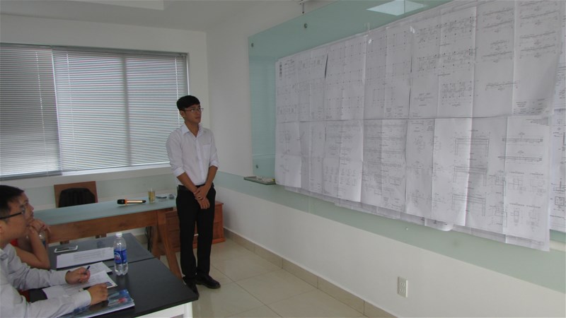 Từng sinh viên trình bày đồ án của mình trong thời gian qua trước Hội đồng