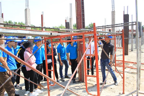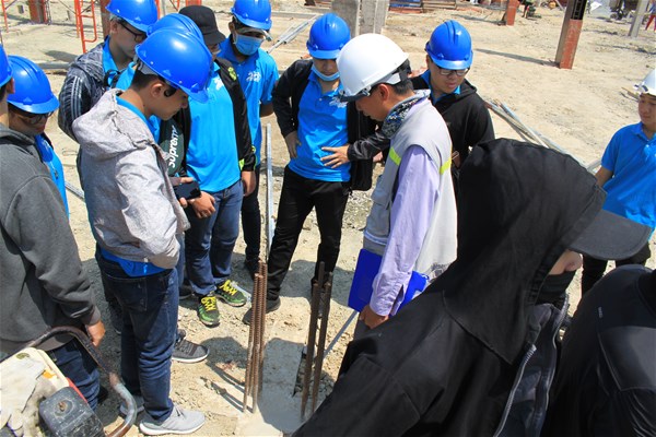 Trong đợt học tập thực tế chuyên môn này sinh viên Khoa Kỹ thuật công trình được tới công trình đang xây dựng Trường mần non Long Phước – Huyện Long Thành. Thông qua ngày học này sinh viên được tận mắt quan sát sự kết hợp giữa lý thuyết và các bộ phận kết cấu của công trình ngoài thực tế; Tìm hiểu trình tự và phương pháp thi công tại công trình; Tìm hiểu thực tế các máy móc phục vụ thi công; Tìm hiểu bố trí thép cột và sàn, đóng cốt pha cột… Từ đó, các em sinh viên sẽ xác định được môi trường và tính chất làm việc của ngành nghề sau khi ra trường.
