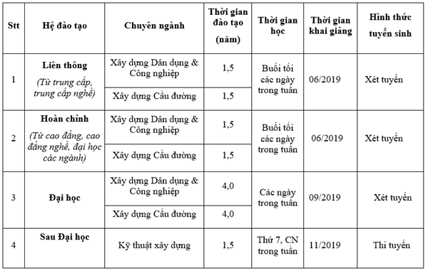 Năm 2019, Khoa Kỹ thuật công trình, trường ĐH Lạc Hồng được phép tuyển sinh theo hình thức xét tuyển điểm học bạ trung học phổ thông (THPT). Yêu cầu: Tốt nghiệp Trung học phổ thông và điểm trung bình chung 3 môn theo khối xét tuyển (A, A1, V) ở lớp 10, lớp 11 và điểm trung bình lớp 12 (Tb học kỳ 1 và học kỳ 2) đạt từ 6.0 điểm trở lên.