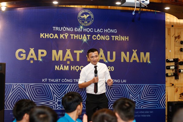 Tham dự buổi gặp mặt có toàn thể các Thầy cô giảng viên và toàn thể các sinh viên tham gia học tại Khoa Kỹ thuật công trình. Phát biểu tại buổi gặp mặt, Thầy Nguyễn Khánh Hùng – Quyền trưởng Khoa chào mừng các tân sinh viên và hi vọng rằng bạn tân sinh viên sẽ cố gắng phấn đấu học tập tốt và học toàn diện.