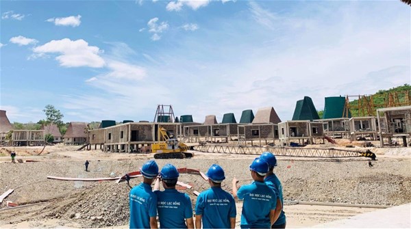 Trong đợt học tập thực tế chuyên môn này sinh viên Khoa Kỹ thuật công trình được tới công trình đang xây dựng tại dự án Rạng Đông Group tại xã Hồng Liên, huyện Thuận Bắc, tỉnh Bình Thuận. Thông qua ngày học này sinh viên được tận mắt quan sát sự kết hợp giữa lý thuyết và các bộ phận kết cấu của công trình ngoài thực tế; Tìm hiểu trình tự và phương pháp thi công tại công trình; Tìm hiểu thực tế các máy móc phục vụ thi công; Tìm hiểu bố trí thép cột và sàn, đóng cốt pha cột… Từ đó, các em sinh viên sẽ xác định được môi trường và tính chất làm việc của ngành nghề sau khi ra trường.