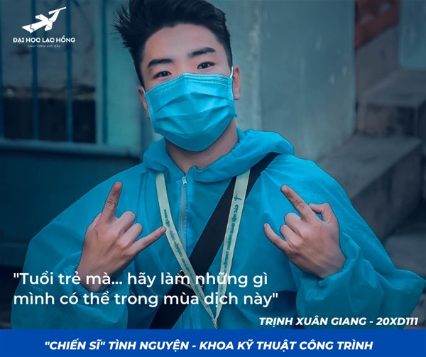 Bạn Trịnh Xuân Giang – sinh viên năm 2 với trách nhiệm là lớp trưởng lớp 20XD111 khi Đồng Nai bắt đầu giãn cách bạn đã xung phong, trở thành tình nguyện viên của Hội giáo Hoàng truyền giáo thuộc giáo phận Xuân Lộc với hơn 1 tháng nay với công việc hỗ trợ cho giáo dân tại đây cho rằng: “Dù hơi vất vả những vẫn luôn cố gắng mỗi khi giáo hội cần vì vẫn còn nhiều người khó khăn hơn mình nhiều.” Chính vì vậy mà trong bộ đồ bảo hộ Giang xung phong đi mọi nơi cùng các anh chị tuyến đầu.