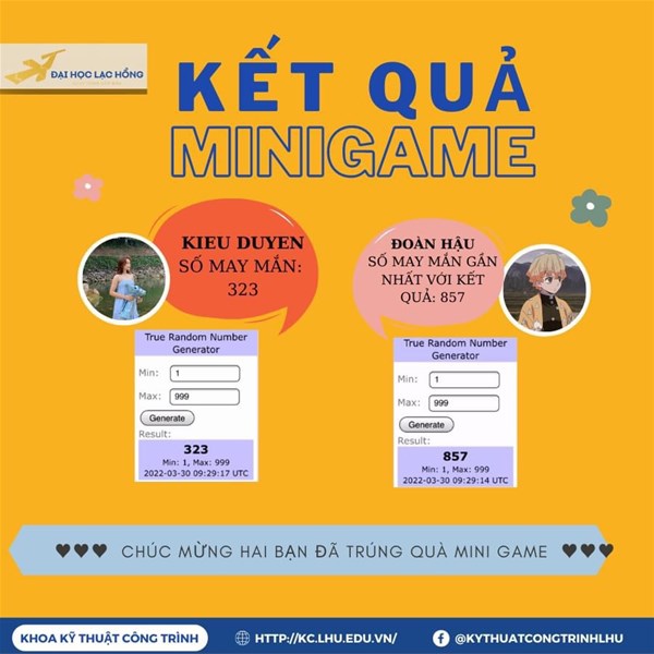 🔥LUẬT CHƠI Bước 1: 𝗧𝗵𝗶́𝗰𝗵 𝘃𝗮̀ 𝗰𝗵𝗶𝗮 𝘀𝗲̉ bài viết này ở chế độ công khai; Bước 2: 𝗕𝗶̀𝗻𝗵 𝗹𝘂𝗮̣̂𝗻 đáp án ở ô chữ bí ẩn màu đỏ + 𝐓𝐀𝐆 số bất kì; 000-999 + tag 2 người bạn (1 tài khoản được tham gia tối đa 3 lần); Bước 3: 𝗧𝗵𝗲𝗼 𝗱𝗼̃𝗶 FANPAGE Khoa Kỹ Thuật Công Trình – LHU để nhận kết quả.