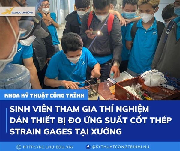 Vào đầu tháng 5/2022, Thầy Vũ Ngọc Thành hướng dẫn sinh viên các lớp thực hiện công tác dán Thiết bị đo ứng suất cốt thép Strain Gages vào cốt thép.