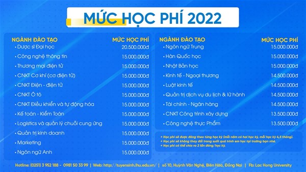 LHU là Trường hiếm hoi xây dựng chính sách “không tăng học phí trong suốt quá trình học, không phát sinh bất kỳ một khoản chi phí nào”. Học phí từ học kỳ đầu tiên đến học kỳ cuối là như nhau.