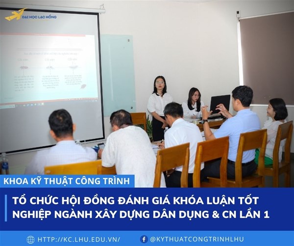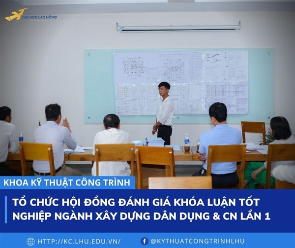 Vào sáng ngày 09/7/2022, tại phòng I107 cơ sở 6 trường Đại học Lạc Hồng, Khoa Kỹ thuật công trình tổ chức Hội đồng đánh giá luận văn tốt nghiệp Kỹ sư đợt 1 cho sinh viên của lớp 18XD111 thuộc hệ Đại học thuộc chuyên ngành Xây dựng Dân dụng và Công nghiệp.