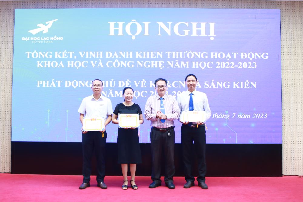 Nhằm ghi nhận sự cố gắng của Giảng viên trong công tác nghiên cứu khoa học, sáng kiến kinh nghiệm trong năm học 2022-2023. Trường Đại học Lạc Hồng tổ chức Lễ Tổng kết, vinh danh khen thưởng các giải pháp sáng kiến Giải thưởng khoa học công nghệ năm học 2022-2023 và Phát động chủ đề sáng kiến năm học 2023-2024 vào ngày 11/7/2023 tại Hội trường A301.