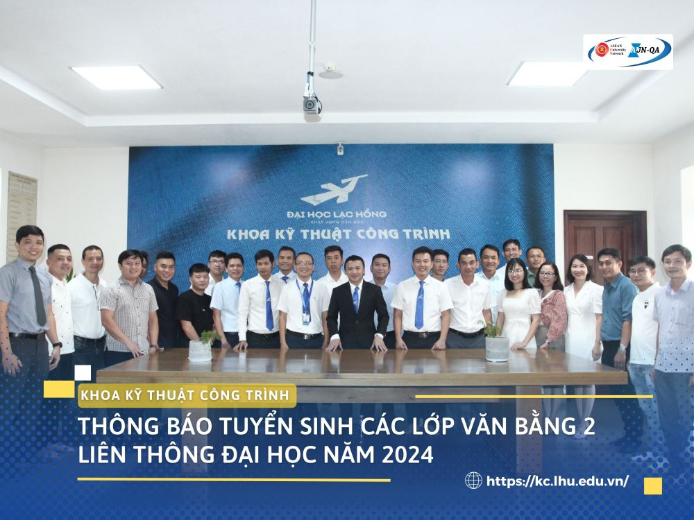 Khoa Kỹ thuật công trình thông báo tuyển sinh các lớp Văn bằng 2, Liên thông đại học năm 2024, bằng cấp Kỹ sư thuộc 2 chuyên ngành Xây dựng Cầu đường và Xây dựng Dân dụng & Công nghiệp nhằm đáp ứng nhu cầu học tập cho học viên làm việc trong ngành Xây dựng.