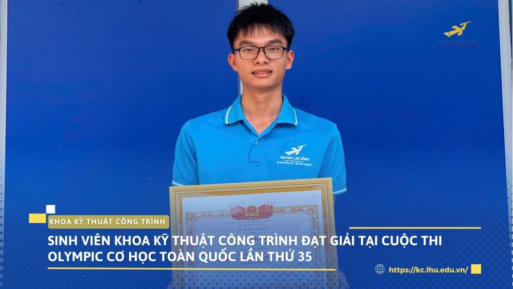 Khoa Kỹ thuật Công trình – Trường Đại học Lạc Hồng trân trọng chúc mừng sinh viên Đỗ Quang Vinh đã đạt giải Khuyến khích tại Cuộc thi Olympic Cơ học toàn quốc năm 2025, được tổ chức tại Trường Đại học Cần Thơ.