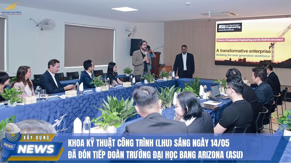 Ngày 14/5/2025, tại phòng B203 – Trường Đại học Lạc Hồng, Khoa Kỹ thuật Công trình (KTCT) đã vinh dự đón tiếp đoàn đại biểu từ Đại học Bang Arizona (Arizona State University - ASU), Hoa Kỳ, mở ra nhiều triển vọng trong lĩnh vực hợp tác quốc tế, đào tạo và nghiên cứu ngành Kỹ thuật xây dựng.