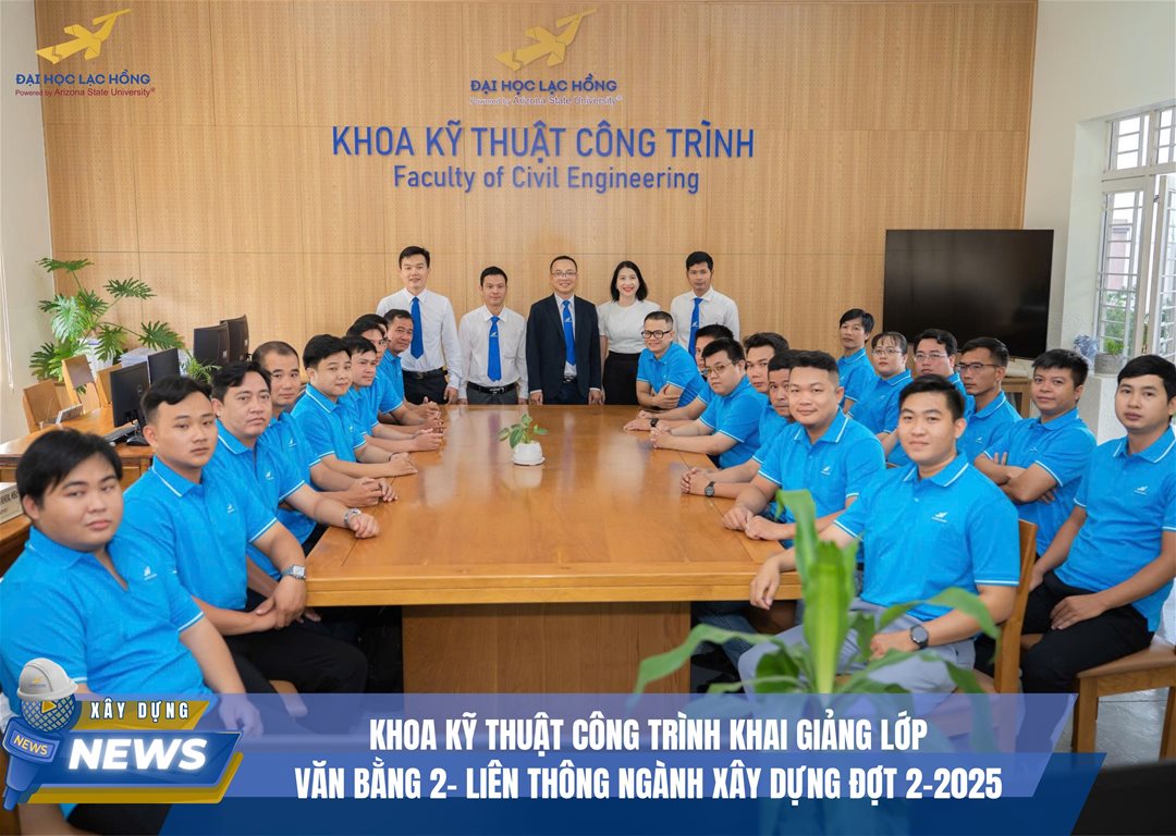 Đầu tháng 10/2025, Khoa Kỹ thuật Công trình, Trường Đại học Lạc Hồng chính thức tổ chức lễ khai giảng lớp Văn bằng 2 và Liên thông đại học đợt 2 năm 2025, chuyên ngành Xây dựng Dân dụng & Công nghiệp và Xây dựng Cầu đường.