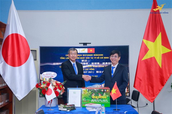 Sáng ngày 8 tháng 11, Phòng Quan hệ Quốc Tế và ngành Nhật Bản học, Khoa Đông Phương đã tổ chức lễ đón tiếp ngài Watanabe Nobuhiro - Tổng Lãnh sự quán Nhật Bản tại TP Hồ Chí Minh đến thăm, làm việc và trao tặng gần 100 cuốn sách cho Thư viện Trường Đại học Lạc Hồng trong khuôn khổ dự án "Read Japan Project" của The Nippon Foundation và Hiệp hội khoa học Nhật Bản.