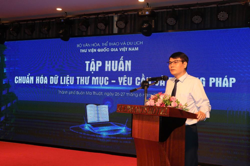 Phiên khai mạc có sự tham dự của ông Lại Đức Đại - Phó Giám đốc Sở Văn hóa, Thể thao và Du lịch tỉnh Đắk Lắk; ông Nguyễn Hữu Giới - Chủ tịch Hội Thư viện Việt Nam; ông Nguyễn Hùng Cường - Viện trưởng Viện Thông tin Khoa học xã hội cùng đại diện lãnh đạo và viên chức làm công tác chuyên môn đến từ các thư viện công cộng, thư viện đại học, thư viện chuyên ngành, thư viện lực lượng vũ trang trong toàn quốc… Về phía Ban Tổ chức, có ông Nguyễn Xuân Dũng - Giám đốc Thư viện Quốc gia, các giảng viên, báo cáo viên tham gia tập huấn.