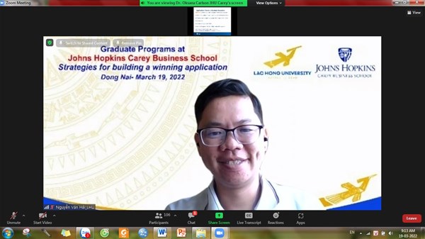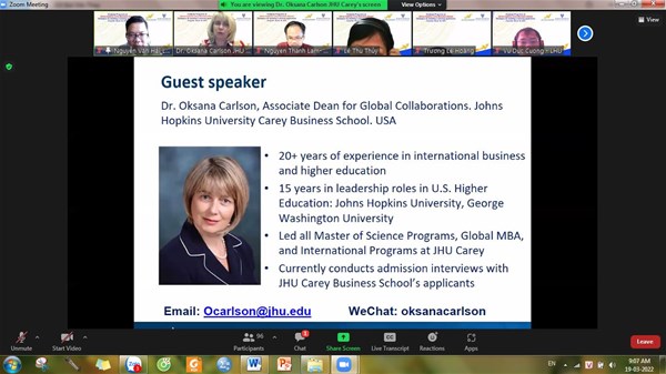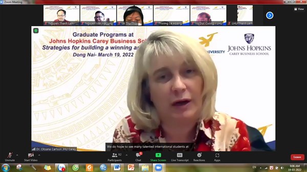 At 9:00 a.m, on March 19, 2022, LHU joined the webinar program with John Hopkins Carey Business School.