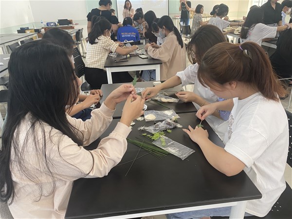 The program was attended by many students of the courses enthusiastically, excitedly and with a sense of responsibility. The students were well-groomed and meticulously cared for the pretty little flowers, hoping to create the most meaningful gifts.