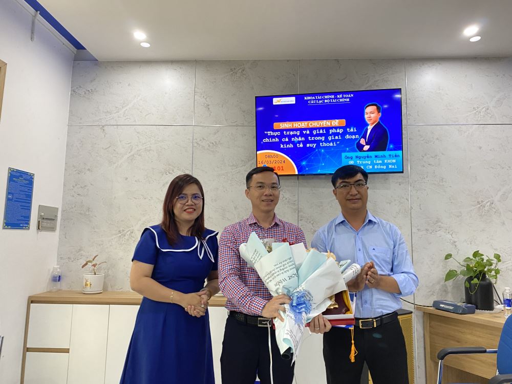 On the morning of March 16, 2024, the Faculty of Finance and Accounting organized a Finance Club activity, featuring Mr. Nguyen Minh Tien, Director of the Business Center of Construction Bank - Dong Nai Branch, Deputy Director of Finance Vision Co., Ltd. The session's theme was "Current Situation and Personal Financial Solutions in the Economic Recession Period."