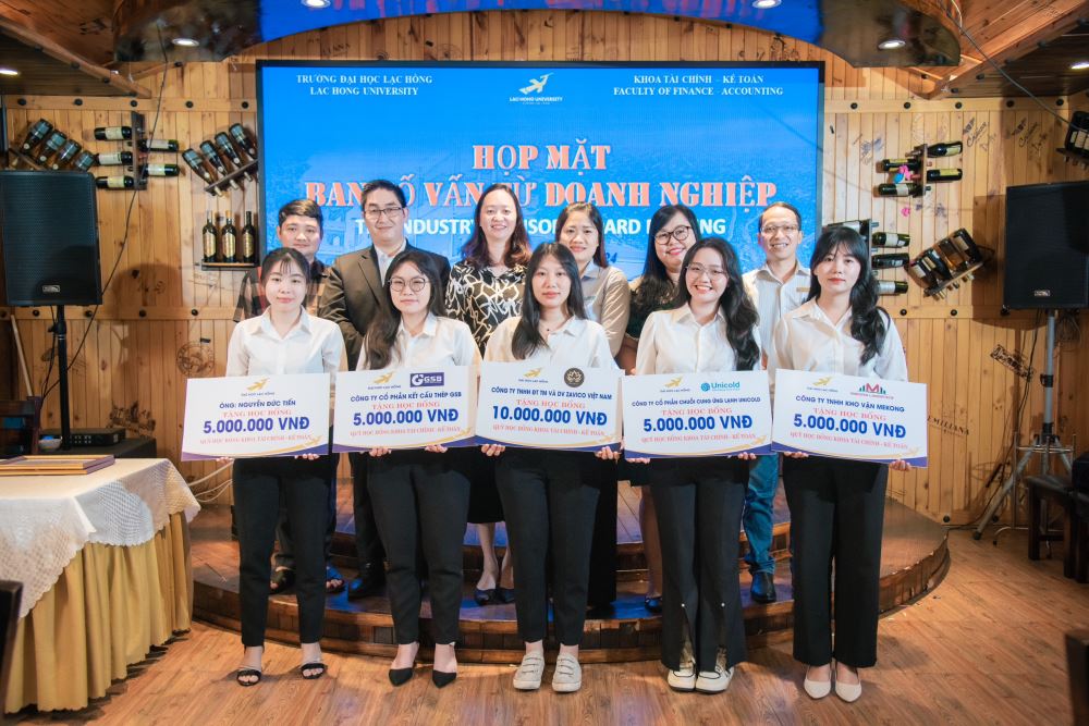 The Faculty of Finance and Accounting extends its heartfelt thanks to Zavico Vietnam Investment and Service Co., Ltd., 939 Investment Trading Joint Stock Company, GSB Steel Structure Joint Stock Company, Unicold Supply Chain Joint Stock Company, Mekong Warehouse Logistics Co., Ltd., and the alumni who donated to the Faculty of Finance and Accounting Scholarship Fund.