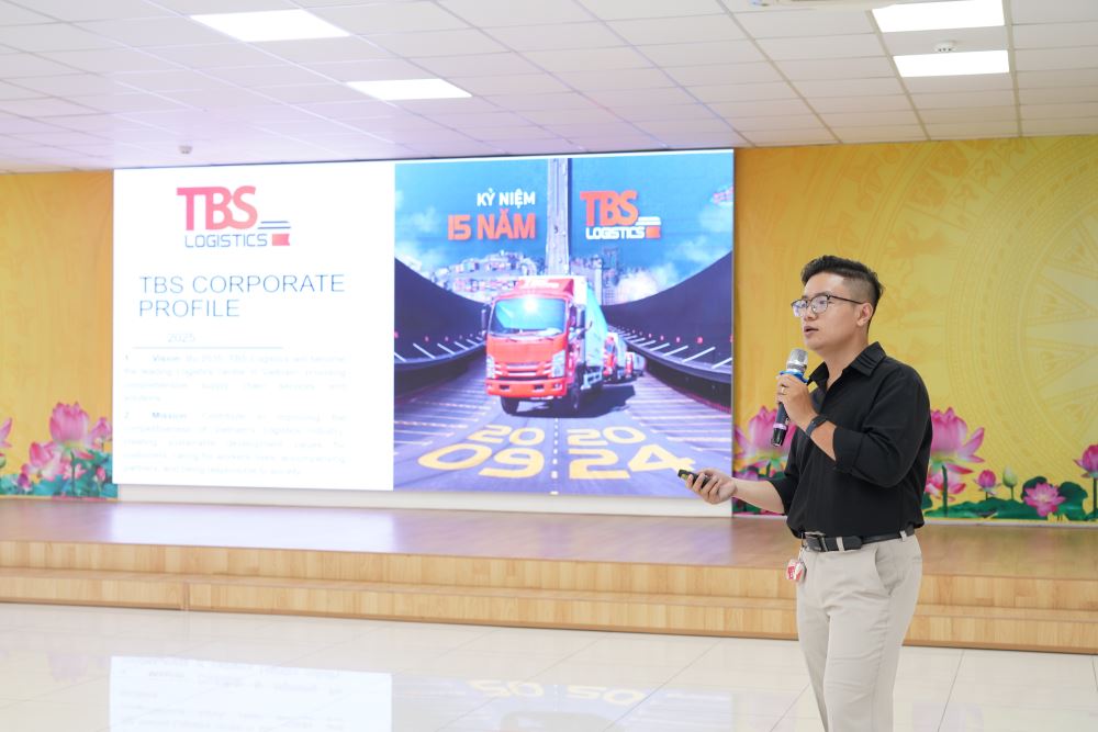 On the morning of April 9, 2025, nearly 90 students from the Logistics major, representing classes 24LG111 and 24LG112 of the Faculty of Finance and Accounting at Lac Hong University, participated in a highly practical and insightful field trip to TBS Logistics, located at No. 9, DT743 Street, Binh Thang Ward, Di An City, Binh Duong Province.
