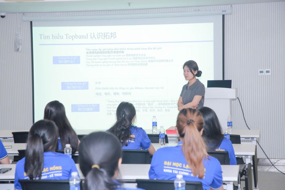 The visit was organized with a specific and well-structured itinerary. The students were picked up at 7:15 AM from Gate 1 of Lac Hong University and transported to TOPBAND SMART Dong Nai Co., Ltd. Upon arrival, the students participated in a company introduction session, followed by a tour of the working areas and production processes within the company. This provided students with an opportunity to better understand activities in the accounting field, particularly in the manufacturing and business environment.