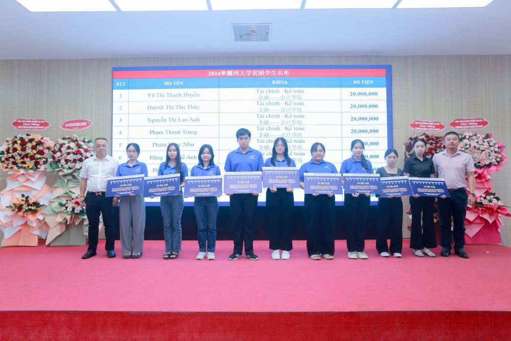 Tại buổi lễ, nhà trường đã trao quyết định thành lập Ban quản lý Quỹ học bổng, khẳng định sự minh bạch, trách nhiệm và tính chuyên nghiệp trong hoạt động vận hành. Ban quản lý Quỹ sẽ đảm bảo mọi nguồn tài trợ được sử dụng hiệu quả, mang lại giá trị thiết thực cho cộng đồng sinh viên. Đồng thời, Ban Tổ chức đã công bố và trao 36 suất học bổng dành cho các sinh viên tiêu biểu vượt khó. Đặc biệt, trong số đó, 3 bạn sinh viên xuất sắc nhất đã nhận được học bổng toàn phần trị giá gần 30 triệu đồng/suất. Đây là sự ghi nhận xứng đáng cho những nỗ lực không ngừng của các bạn trên con đường chinh phục tri thức.