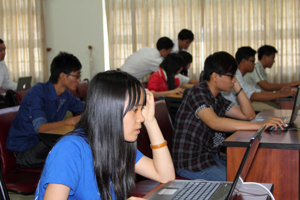 Tập trung làm bài thi trắc nghiệm tiếng Anh trên máy