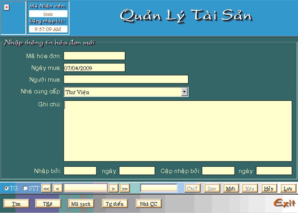ü      Tạo hóa đơn mỗi lần nhập sách về.
