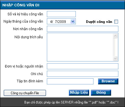1. Phần mềm dành cho nhiều đối tượng người dùng trong một đơn vị. Mỗi người dùng có quyền tạo ra công văn điện tử (Bao gồm công văn đi – Công văn đến) cho riêng mình.