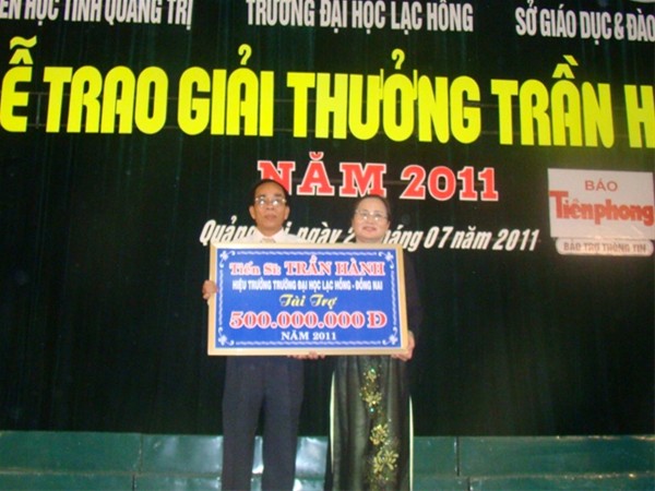 On July 27, 2011, Lac Hong University, Department of Education and Training, Quang Tri provincial Study Promotion Association organized a ceremony to award  Tran Hanh Prize worth a total of VND 500 million to Quang Tri province’s outstanding students.
