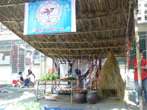 At the event, many cultural activities and game shows were held such as Korean calligraphy, folk games, Vietnamese – Korean traditional food, K-pop performance, camp decoration “Korean space”. Closing the festival, students of Lac Hong were awarded second prize of “K-STAR performance” and third prize of “Korean space” by the Organization Board.