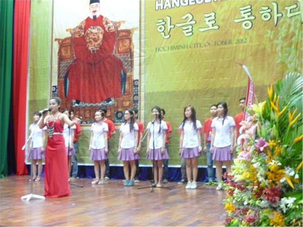 More than Lac Hong University’s 100 students of Korean Studies - Faculty of Oriental Studies took part in Hangeul Festival 2012 on November 4 at University of Social Sciences and Humanities. The event was held by Korea Foundation, Korean Cultural Institute and KOICA (Korea International Cooperation Agency) in cooperation with University of Social Sciences and Humanities. The festival attracted the great participation of nearly 1,000 students coming from Southern universities and colleges.