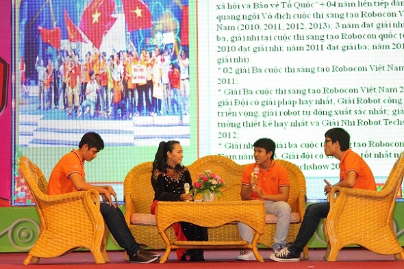 The ceremony also took place an exchange program among typical individuals in patriotic movement such as Hero of the people's armed forces Le Ba Uoc, Meritorious Teacher Tran Anh Dung - Principal of Luong The Vinh high school, Meritorious Doctor Nguyen Ngoc Thanh - Deputy Director of United General Hospital, and excellent faces of Lac Hong Robocon teams.