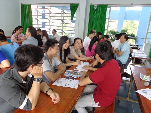 Students actively and enthusiastically discussed in groups.