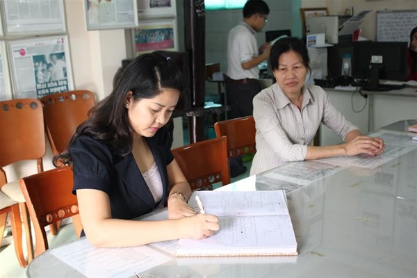 Ms. Nguyen Ho Xuan Huong is writing on the Golden Heart book