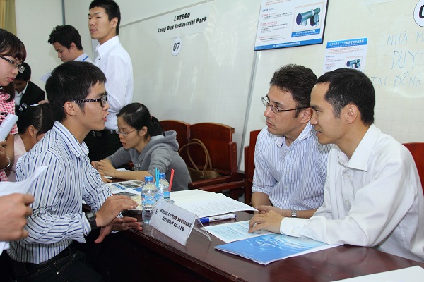 Japanese businesses present at the Job Fair: 1. Fukuokarashi Vietnam Co., Ltd. 2. Mold Vietnam Co., Ltd. 3. Mitani Sangyo Co., Ltd. 4. Mabuchi Motor Vietnam Co., Ltd. 5. Lixil Global Manufacturing Vietnam Co., Ltd. 6. Kobelco Eco-Soutions Vietnam Co., Ltd. 7. Loteco & Long Duc Industrial Park 8. Quick Vietnam Co., Ltd. 9. Pasona Tech Vietnam Co., Ltd. 10. I - Glocal Group 11. Nankai Kinzoku Vietnam Co., Ltd. 12. Eizo Shoes (VN) Co., Ltd. 13. Aoyama Vietnam Co., Ltd. |