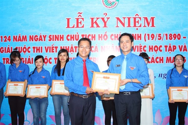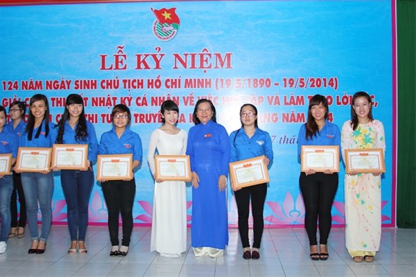 On the occasion, the University Youth Union has summarized and awarded prizes to winners of the contest "Writing diaries to study and follow Ho Chi Minh's moral example 2013 - 2014". The contest received the great interest and participation of youth union members, students, Party candidates, youth union officials at all levels. As a result of the contest, first prize was awarded to comrade Vuong Le Quyen from chapter 10TC118. Second prize belonged to comrade Huynh Thuc Hieu - Staff of Youth Union - Student Association Office. The Organizing Board was also awarded third prizes and consolation prizes to other contestants.