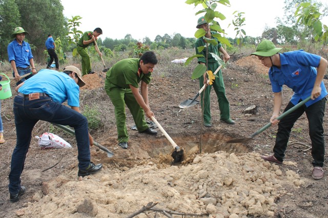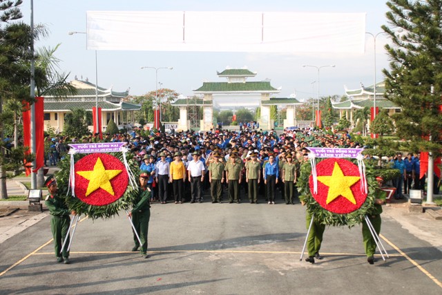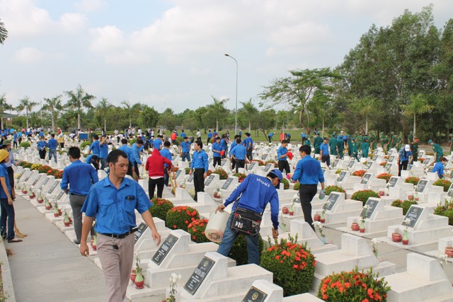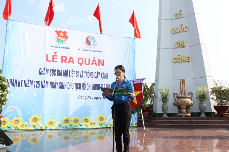 On the occasion of 125th birthday anniversary of President Ho Chi Minh (May 19, 1890 - 2015) and to welcome the Party Congress at all levels and aim for the 10th Party Congress of Dong Nai province, Dong Nai provincial Youth Union in cooperation with Department of Natural Resources and Environment, Department of Labor, War Invalids and Social Affairs organized a launching ceremony to implement youth's work as taking care of martyrs' gravestones and planting trees at province Martyrs' Cemetery.