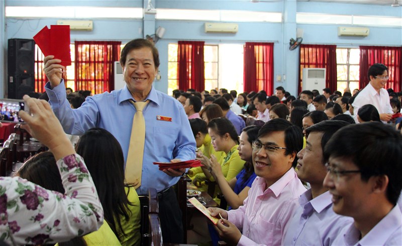 As usual, the New Year's meeting saw the presence of Secretary of Party Committee Nguyen Trung Phuong, Chairman of the Trustees Board - Rector Do Huu Tai, Chairman of Trade Union - Vice Rector Diep Cam Thu, Vice Rectors Nguyen Thi Thu Lan, Lam Thanh Hien and Nguyen Van Nam, entire teachers and staff.