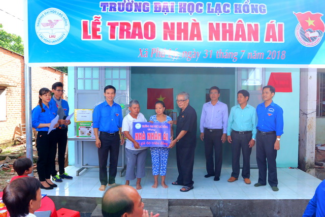 At the ceremony, in addition to donating the charity house, LHU leaders, Trade Union and organizations presented many practical gifts serving daily needs to the family of Mr. Hanh. Also, LHU Youth Union handed over 30 gifts including mosquito nets, student shirts donated by Dong Nai Study Encouragement Association to difficult families and students.