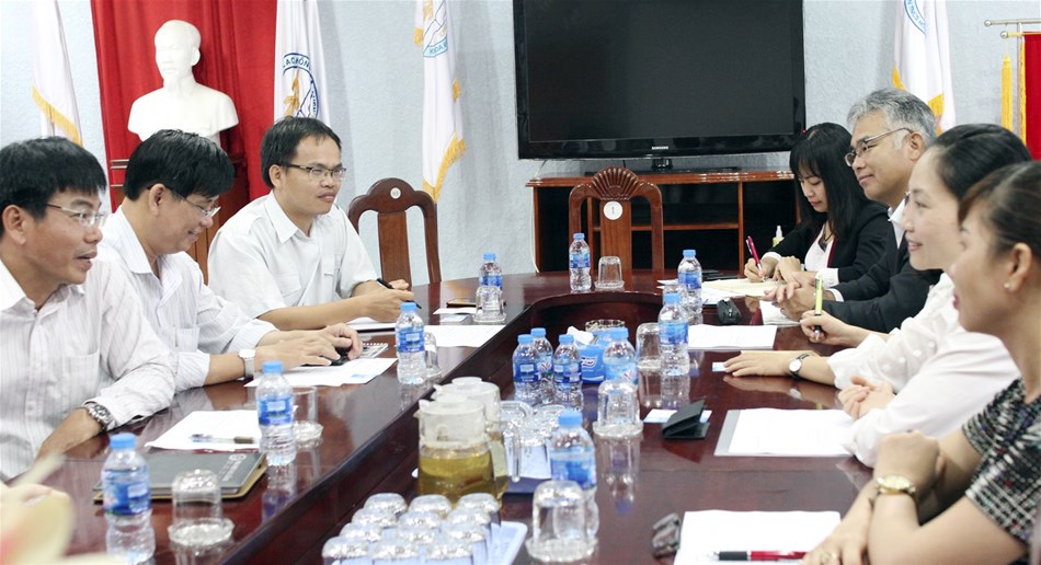 Vice Rector Lam Thanh Hien (middle) was proud to introduce LHU's training projects.