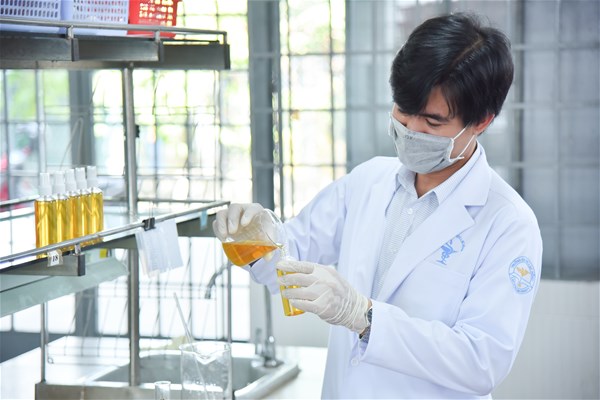 DSc. Cao Van Du - Vice Dean of Faculty of Pharmacy applied nano technology into hand sanitizers made in LHU.
