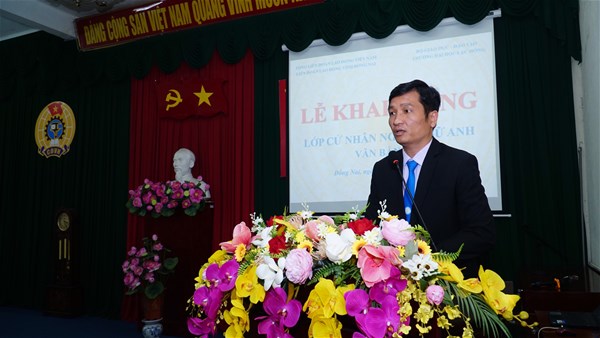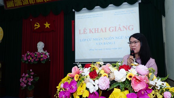 The ceremony was attended by Mr. Nguyen Vu Quynh - Vice Rector; Mr. Do Khoi Nguyen - Vice Rector; Mr. Do Sy Truong - Director of the Center for Foreign Languages and Informatics and Mr. Le Duc Thinh and Mr. Dang Thi - Dean and Vice Dean of the Faculty of English Language; Ms. Nguyen Thi Nhu Y - Chairwoman of the Provincial Labor Confederation and officials from provincial agencies and departments.