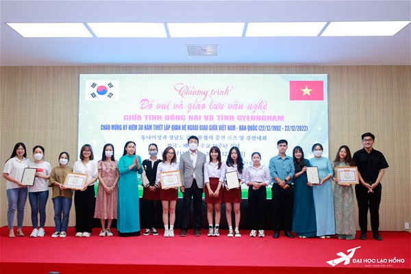 The program saw the presence of Mr. Lee Jeong Man - Head of Representative Office of Gyeongnam province in HCM City and Ms. Huynh Thi Ngoc Hien - Head of Department; Ms. Nguyen Thi Mong Binh - Deputy Director of Department of Culture, Sports & Tourism; Ms. Do Thi Hoa Binh - Deputy Head of the Social Culture Department, Dong Nai Province People's Council; DSc. Lam Thanh Hien - Rector of LHU; Dr. Vo Van Ly - Head of Student Affairs Department of Dong Nai University, Mr. Nguyen Dinh Thai - Secretary of the Youth Union of Dong Nai University of Technology; representatives of departments of Dong Nai province, lecturers and more than 200 students from LHU, Dong Nai University of Technology and Dong Nai University.