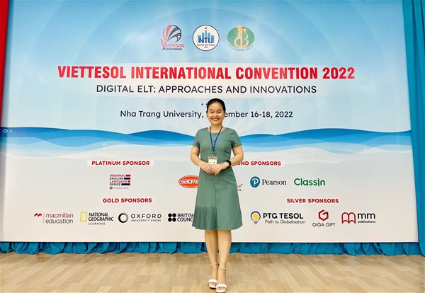 Recently, Ms. Le Thi Ha, lecturer of the Faculty of English Language, LHU attended and presented at the VietTESOL international convention 2022 themed “Digital ELT: Approaches and Innovations” in Nha Trang City from September 16 to September 18, 2022. The convention was co-organized by the Vietnam Association of English Language Teaching and Research (VietTESOL), the Ministry of Education and Training's National Foreign Languages Project and Nha Trang University. Within the framework of the convention, scientists presented new research results on Methods and Innovations in Teaching English in the Digital Age.
