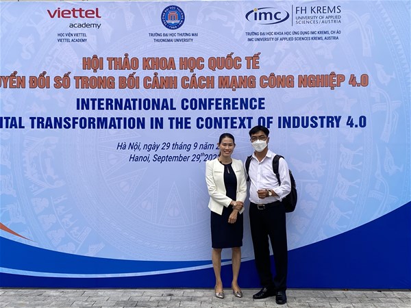 Recently, Mr. Bui Van Thuy and Ms. Lam Ngoc Nhan - Lecturers of the Faculty of Finance and Accounting, LHU attended and presented at the International Conference themed "Digital transformation in the context of Industry 4.0" in Hanoi, September 29, 2022. The conference was co-organized by Thuongmai University, Viettel Academy and IMC University of Applied Sciences Krems (Austria).