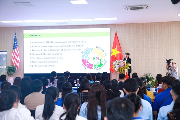 The keynote speech "the Future of Women in STEM in Vietnamese Higher Education" presented by Dr. Do Thi Lan Dai, Chairwoman, University Council, LHU, shows that the issue of gender equality, especially in the STEM fields is still a challenge. Gender stereotypes are also a barrier for women to participate in STEM activities.