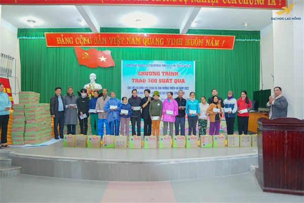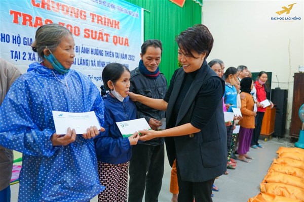 On December 19, LHU in association with Dong Nai Charity Association and Lac Hong Bilingual School visited and presented 300 gifts to people affected by Typhoon Noru which happened in October in Quang Tri province. The delegation included Ms. Do Thi Lan Dai - Chairwoman, University Council; Mr. Vu Van Tuan - Vice Head of Student Affairs Office; Mr. Nguyen Phu Cuong - Chairman of the Provincial Charity Association, Ms. Le Vu Lien Thanh - Vice Chairwoman of the Provincial Charity Association and some teachers of Lac Hong Bilingual School.