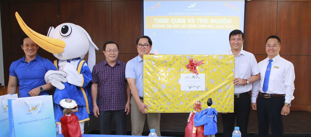 Welcoming the delegation was Assoc. Prof. Dr. Nguyen Vu Quynh - Vice Rector; Huynh Thuc Hieu, MBA - Deputy Director of Center of Admissions and Public Relations; leaders of some units and related staff. The Dong Phu High School's delegation was led by Mr. Nguyen Van Phong - Principal and Mr. Nguyen Van Vinh - Vice Principal.
