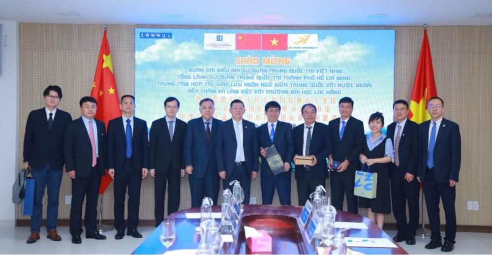 On the morning of April 24, 2023, LHU solemnly welcomed and worked with the delegation of the Chinese Embassy in Vietnam, the Consulate General of China in HCM City and the Center for Language Education and Cooperation (CLEC). At the meeting, under the witness of all above sides and the Department of Foreign Affairs of Dong Nai province, LHU officially signed a cooperation agreement with CLEC to implement a 3+2 joint training program.