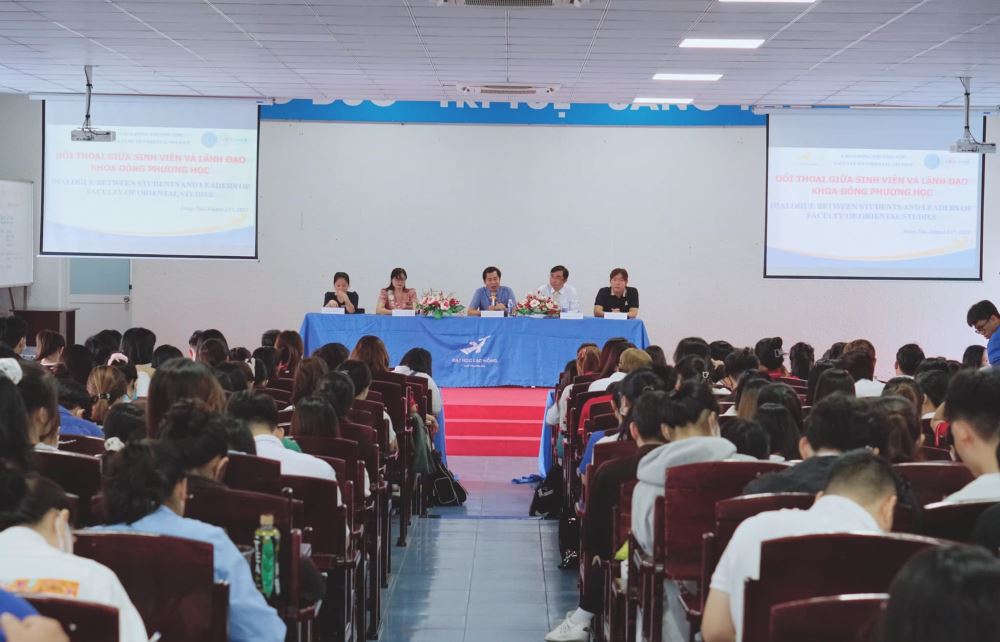 The Faculty of Oriental Studies on August 23 organized a dialogue between leaders and students in the 2023 - 2024 school year at room E501, Campus 3. The meeting was attended by Dr. Nguyen Huu Nghi - Dean along with Heads of Departments, lecturers, staff members and students of the 2020, 2021, 2022 cohorts.