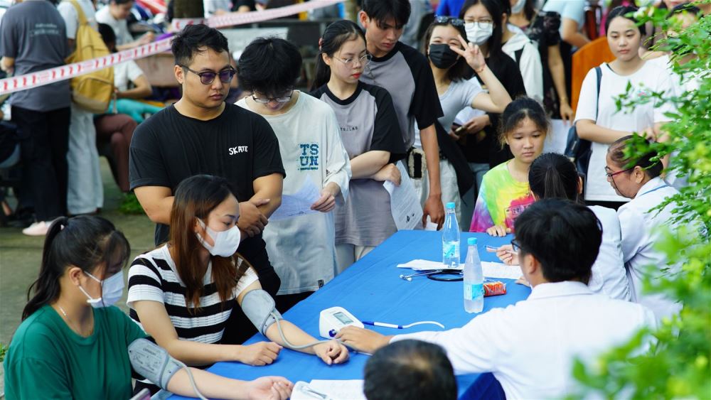 Registered volunteers received blood pressure measurement, medical check from staff of Cho Ray hospital